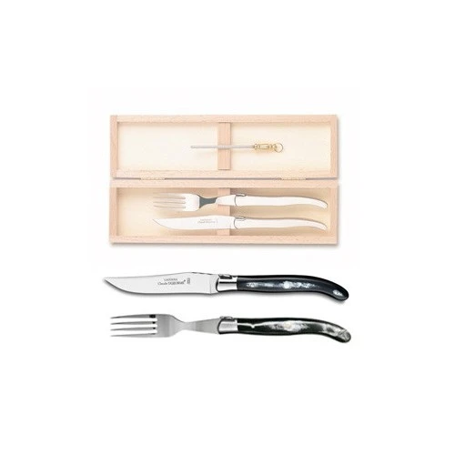 A la recherche d’une idée cadeau originale ? Ce coffret, qui réuni une fourchette à steak Laguiole et un couteau à steak Laguiole, est idéal. Découvrez tout le savoir-faire de l’artisanat Français, dans ce coffret qui rassemble les essentiels d’une belle table à la Française !