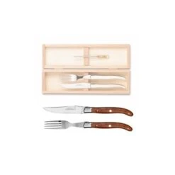Coffret Hêtre 1 Couteau + 1 Fourchette Laguiole Plein Manche
