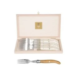 Coffret Hêtre 6 Fourchettes à Steak Laguiole Mitre Inox Manche Méthacrylate