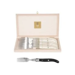 Coffret Hêtre 6 Fourchettes à Steak Laguiole Mitre Inox Manche Corne Noire